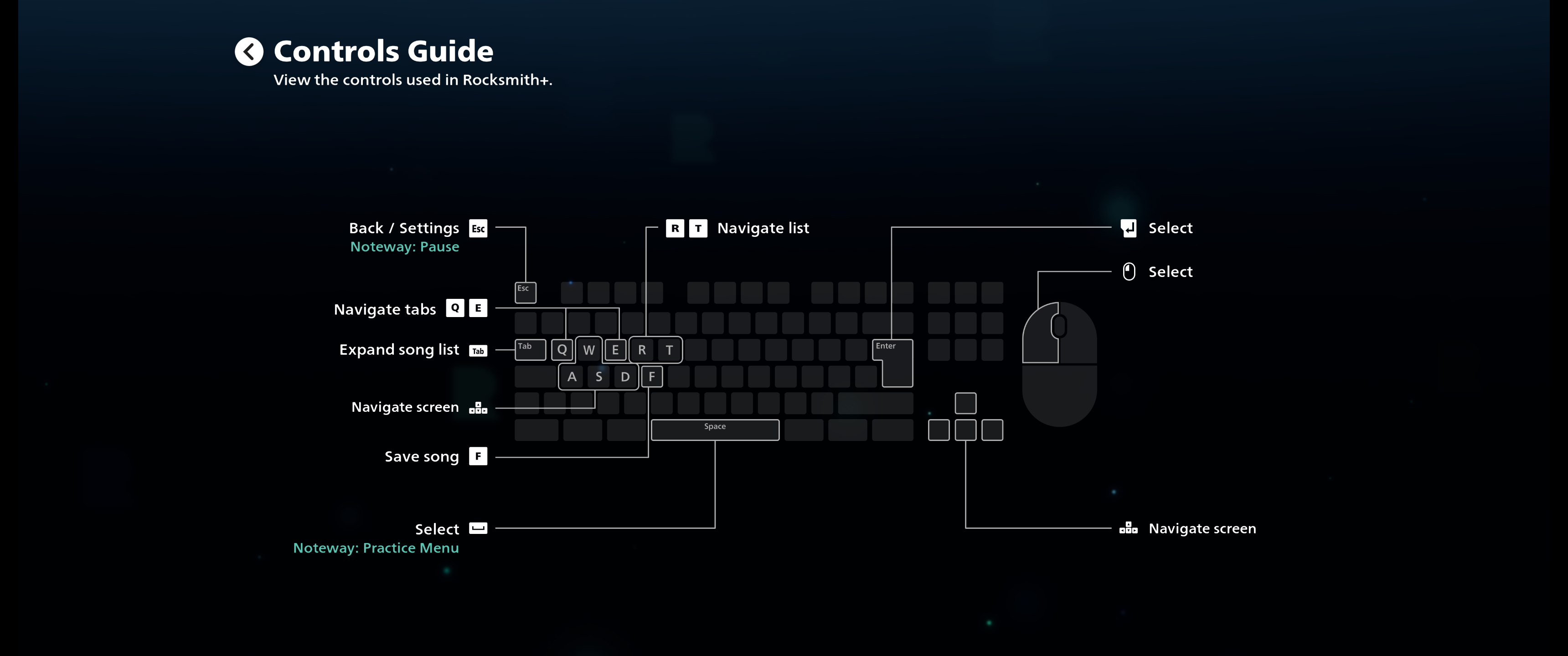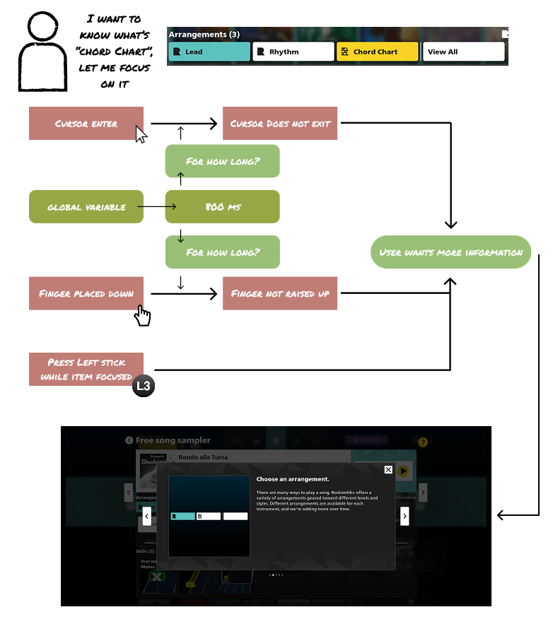 You can see the input diagrams in the Rocksmith+ settings screen to get a high level view of the final interaction design system, but many nitty gritty details are included in the body of this case study.