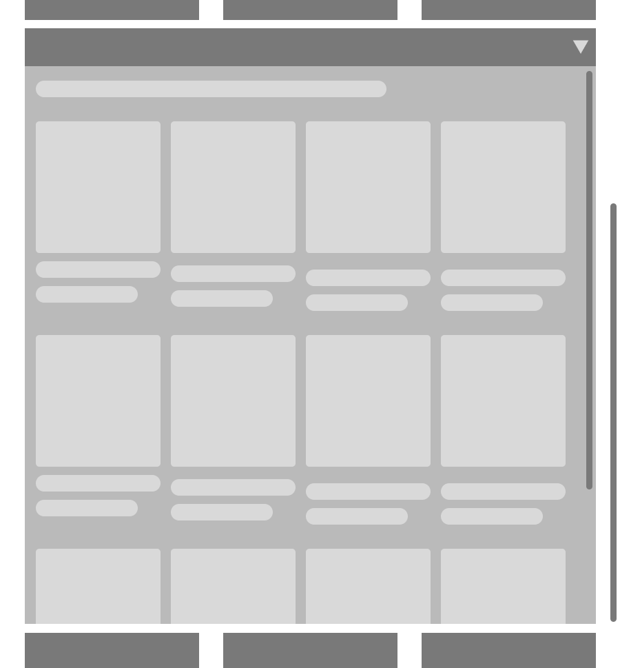 Going back to the drawing board, I drafted up 2-3 more solutions to discuss with my team. One solution proposed by the technical designers in my team was using a two axis design patterm - the vertical axis for moving between different components and the horizontal axis for accessing information of that component. I created multiple quick iterations in Figma to explore commonalities and differences between horizontal scrolls on PC, mobile, and consoles and we quickly landed at a rough solution with a horizontal scroll system at a container level which unlocked an improved, more user friendly design pattern for console and reused many components from PC/mobile.