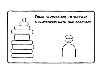 - Immature team culture around global collaboration and building one codebase for launching on five platforms → no one's fault, just lacked having people accountable for driving
