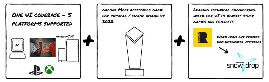This customisation system was easy to build as my team had already worked on a dynamic system to make our 3D UI responsive (as you may have read above). The original system, being built on solid technical foundations, meant that users could change their configuration at run time meaning they could change whenever they wanted and however many times they wanted. While I did not directly work on this exact accessibility feature, a lot of the foundational work that my team did made it easier to imagine and develop these features rapidly.