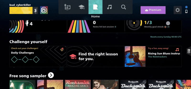For example, on a PC you would scroll through a carousel by clicking left and right arrows. You would do the same on a game console by using the bumper buttons. But on a touch device, do you remember the last time you clicked a button to scroll? Instead you will see your feed extends beyond the screen, and you simply scroll to access those items outside the screen. The UI is built to lead to and teach these natural behaviours that Rocksmith's prototype version was missing as it was built PC first.