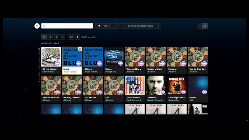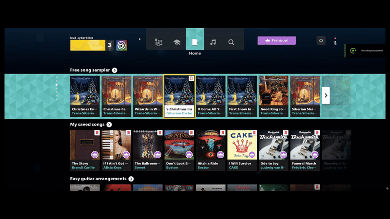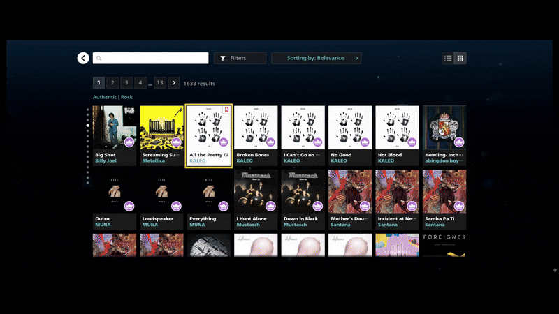 If you are focused in tile number 3 on row 2 and move to row 3 with non-uniform items, then the UI will focus on the item closest in presence of tile number 3 in that container by using tile calculation - if the item in focus is 2 items from the left anchor then move to the item closest to 2 items from the left in the next container. This solution was not completely watertight as it would have some edge cases where the horizontal scroll did not adhere to strict grid based placement. But when we specifically asked our playtest moderator to keep an eye on this issue and included a question "comparing to other main menus such as your console's game library, did you have any issues with the Rocksmith+ main menu?" with a binary yes or no answer. 100% of the results came in as "yes" and the moderator had nothing to report about the navigation. This was a big success.